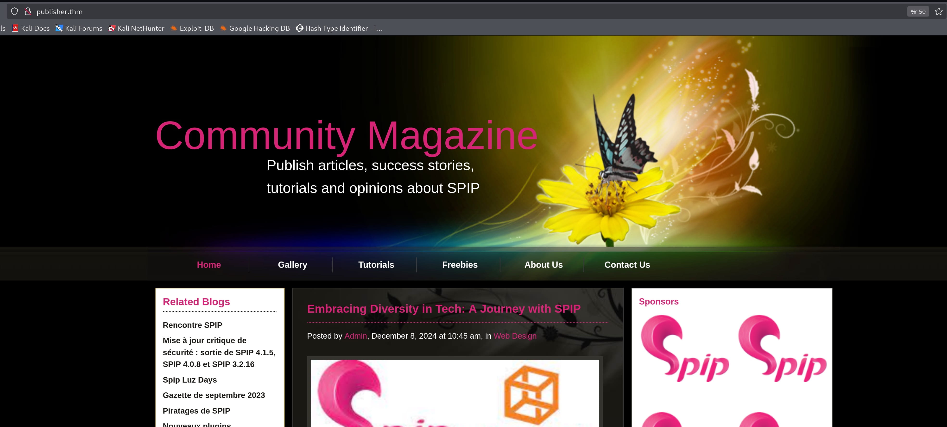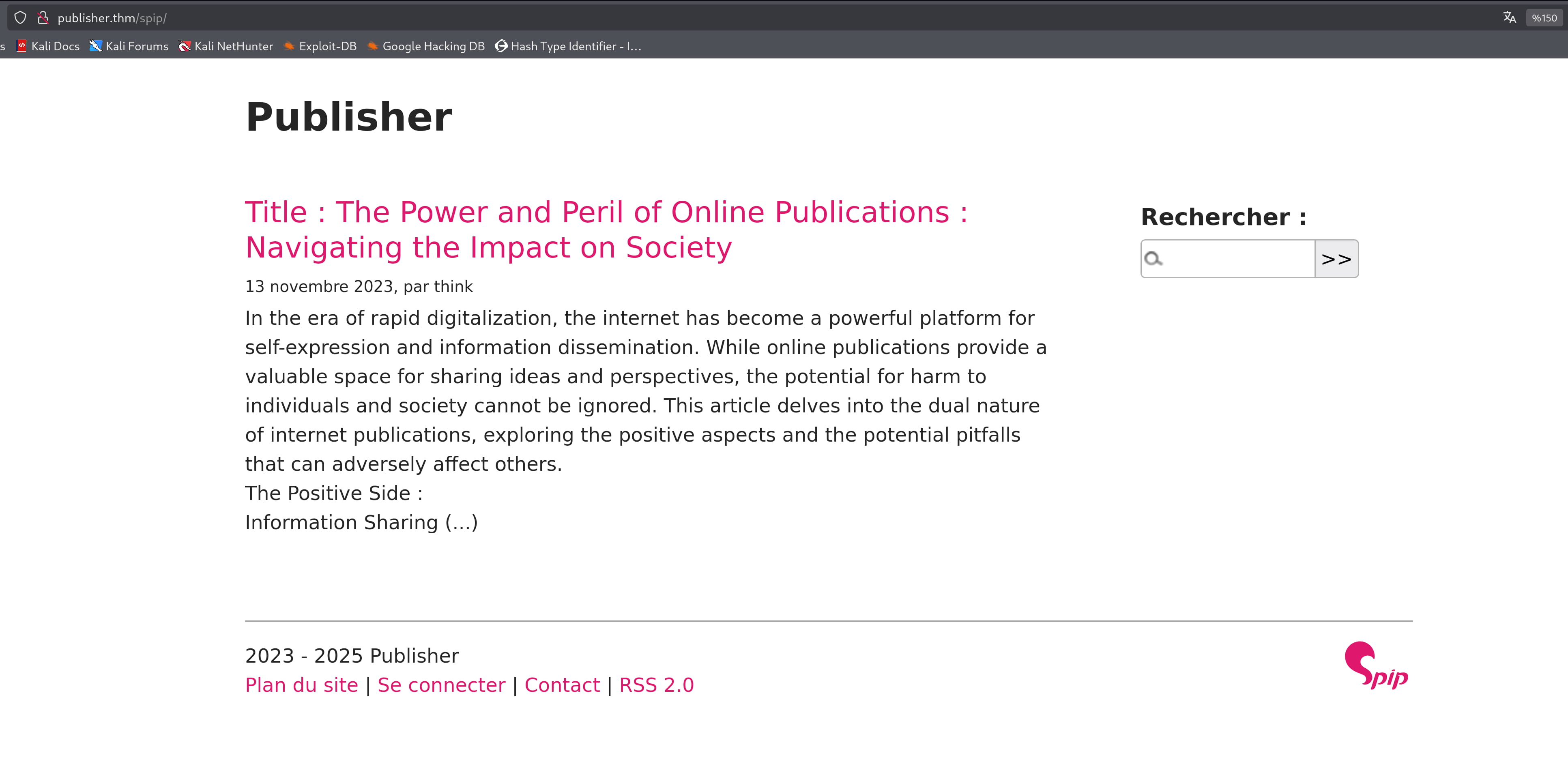 Here, spip catches our attention. When we examine it, we see that it is a CMS. We can't get anything by manually browsing the site. So let's do a directory scan.