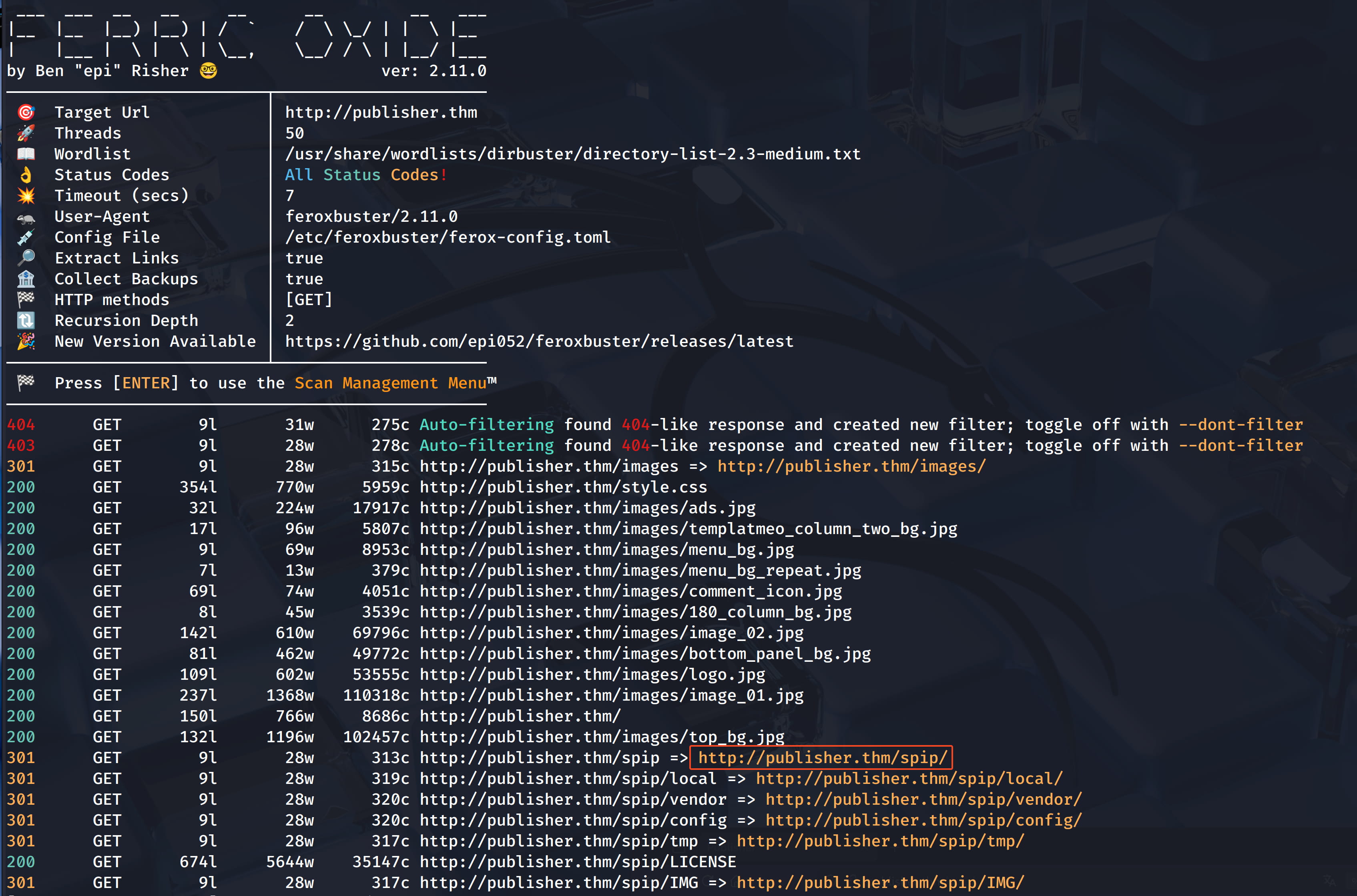 feroxbuster -eBEg -u http://publisher.thm -w /usr/share/wordlists/dirbuster/directory-list-2.3-medium.txt