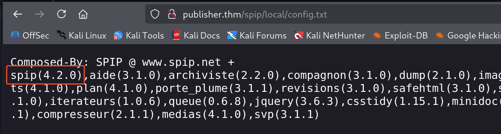 From here we get the /spip directory. And we find many subdirectories like /spip/local/config where we can learn the spip version.
