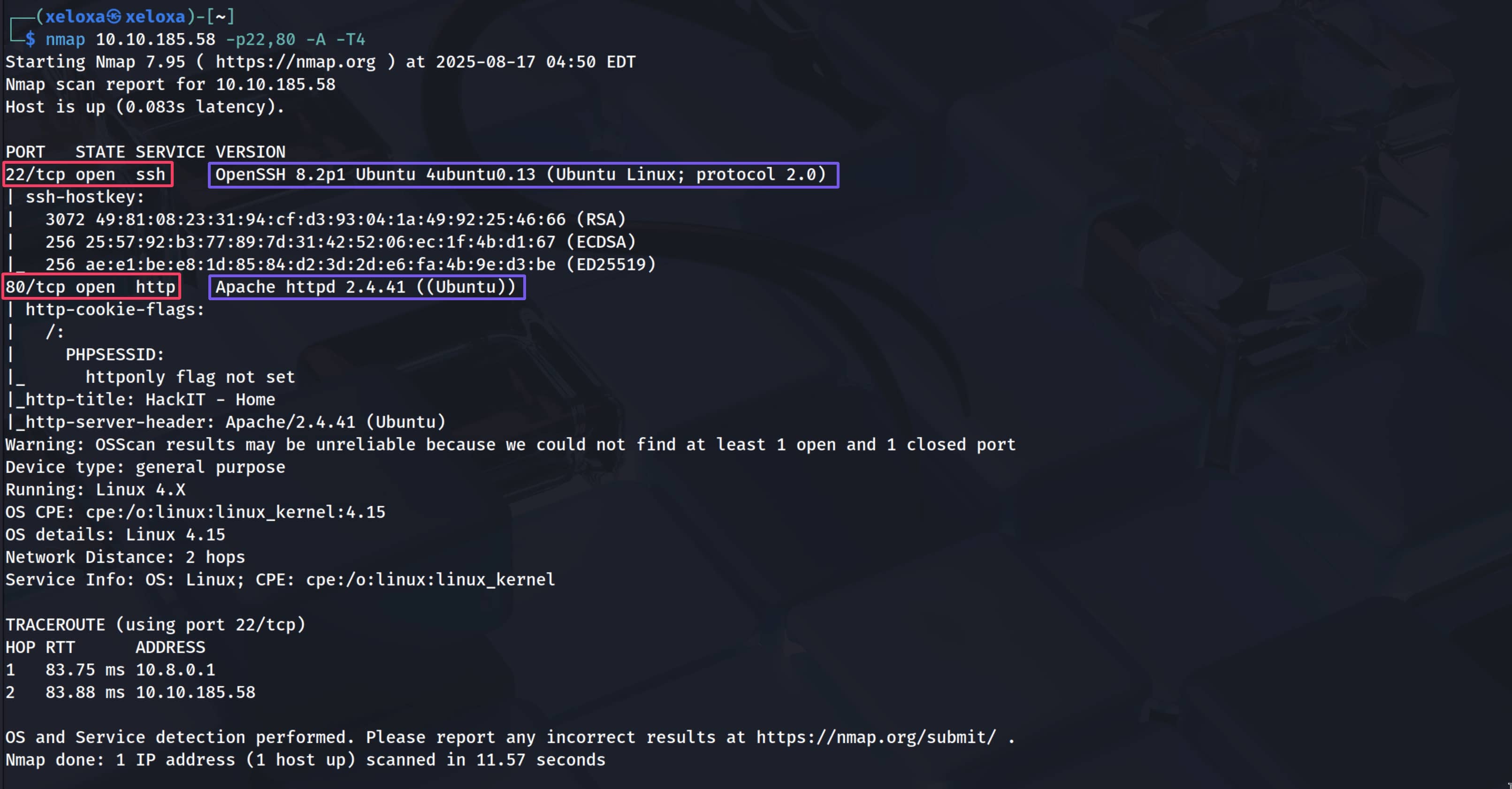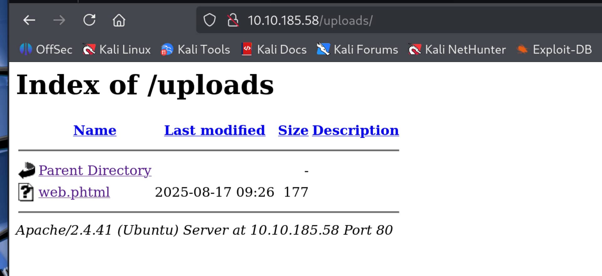 - 80: Apache httpd 2.4.41 ((Ubuntu))