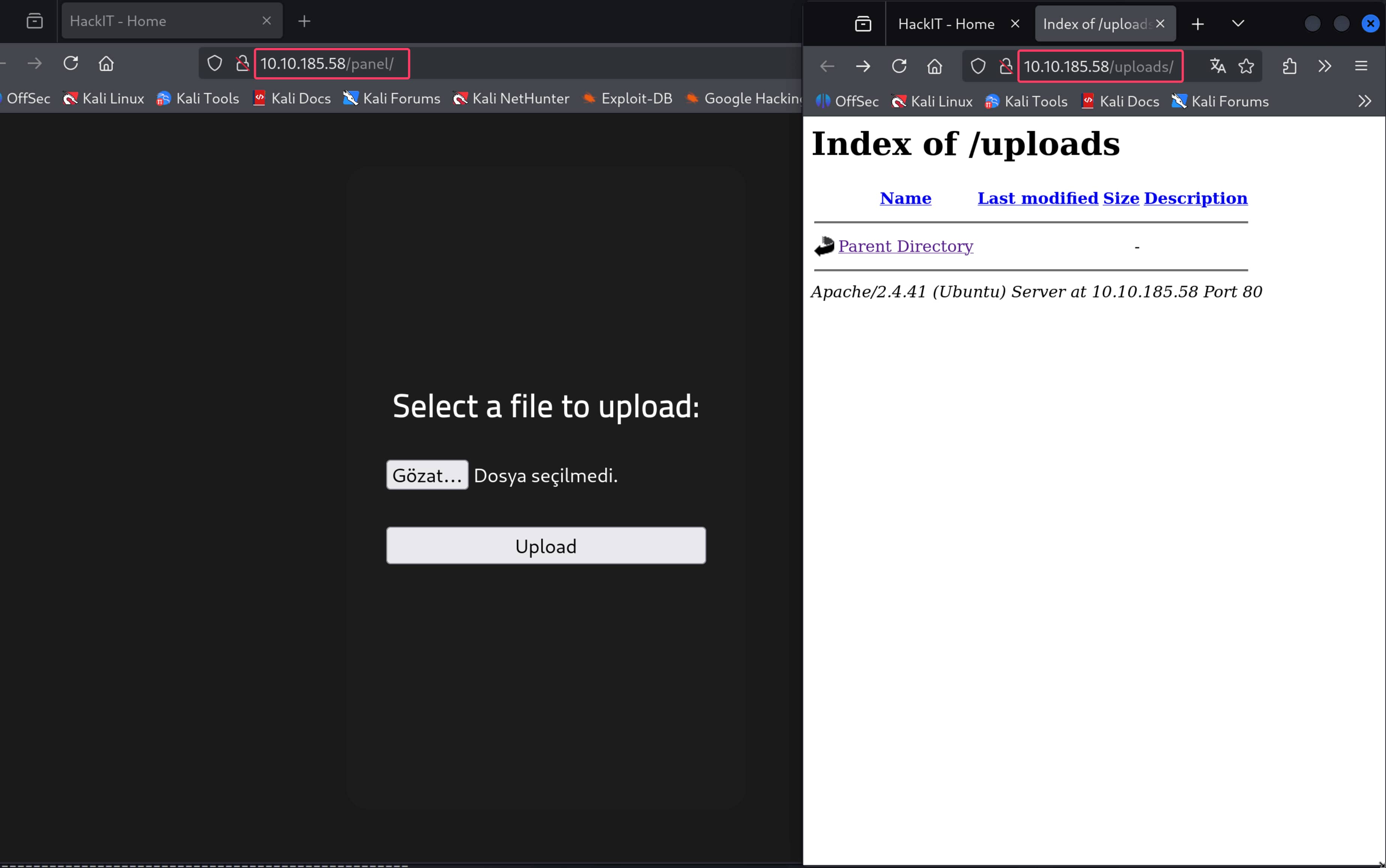 As you can see, there is a file upload section and an uploads section. A file upload vulnerability immediately comes to mind. We can upload a file to the server and gain initial access this way.
