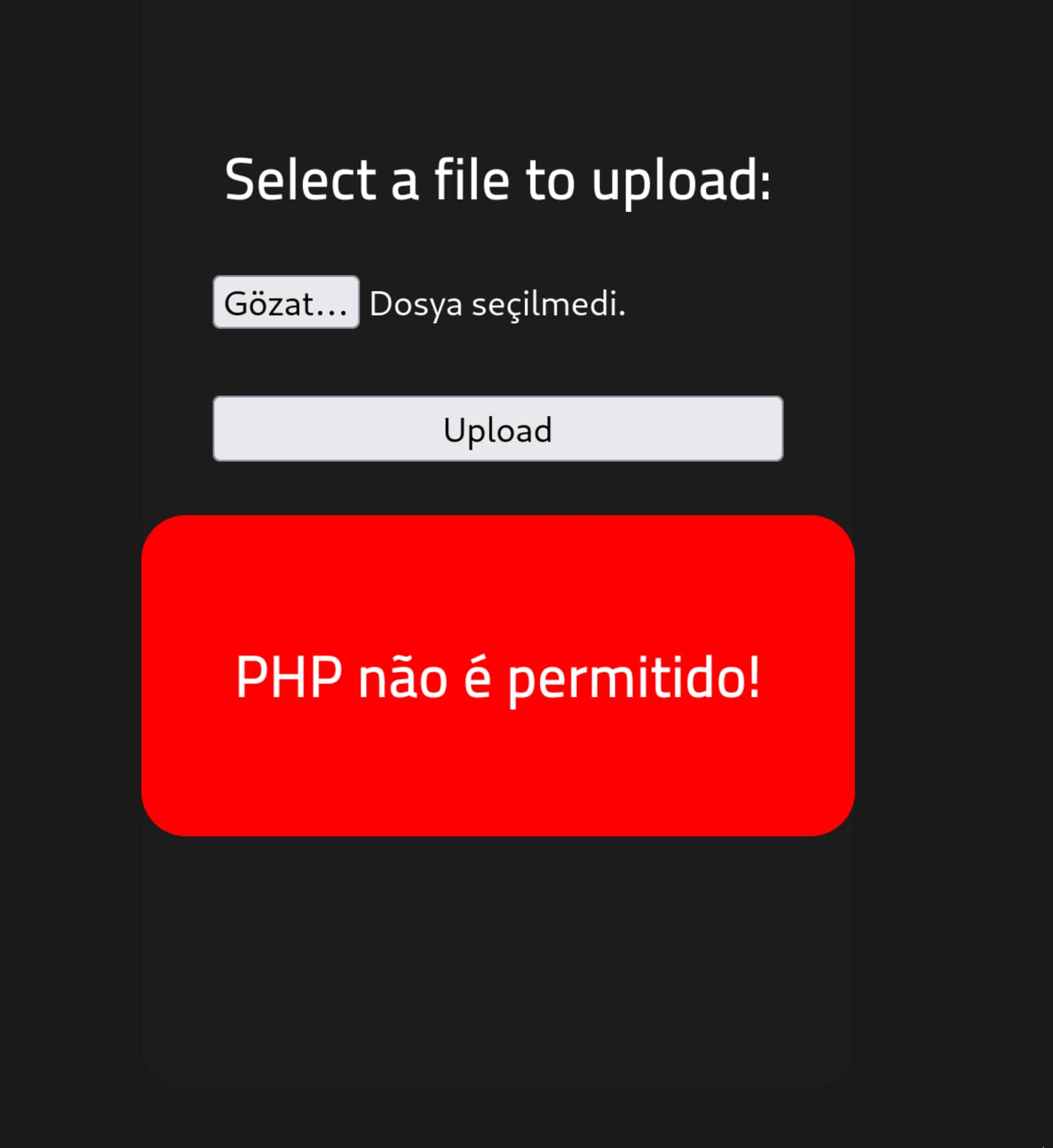 shell.phpfile from the/paneladdress. But right now, an error appears: "PHP is not allowed!". As can be understood from this, the site does not allow.phpfiles.
