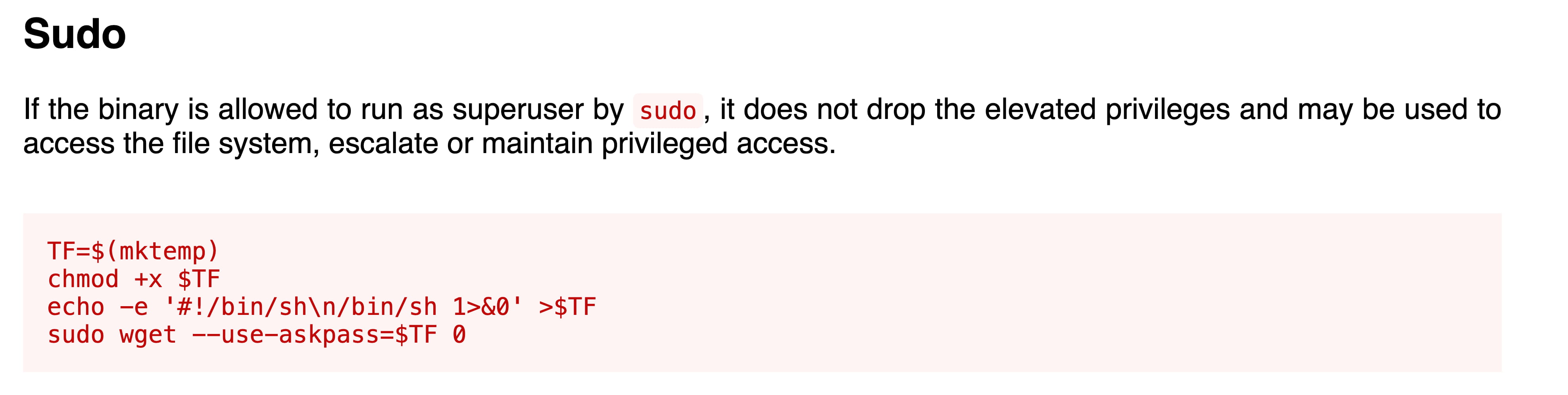 Now let's consider how we can elevate our privileges using the wget tool via GTFObins.