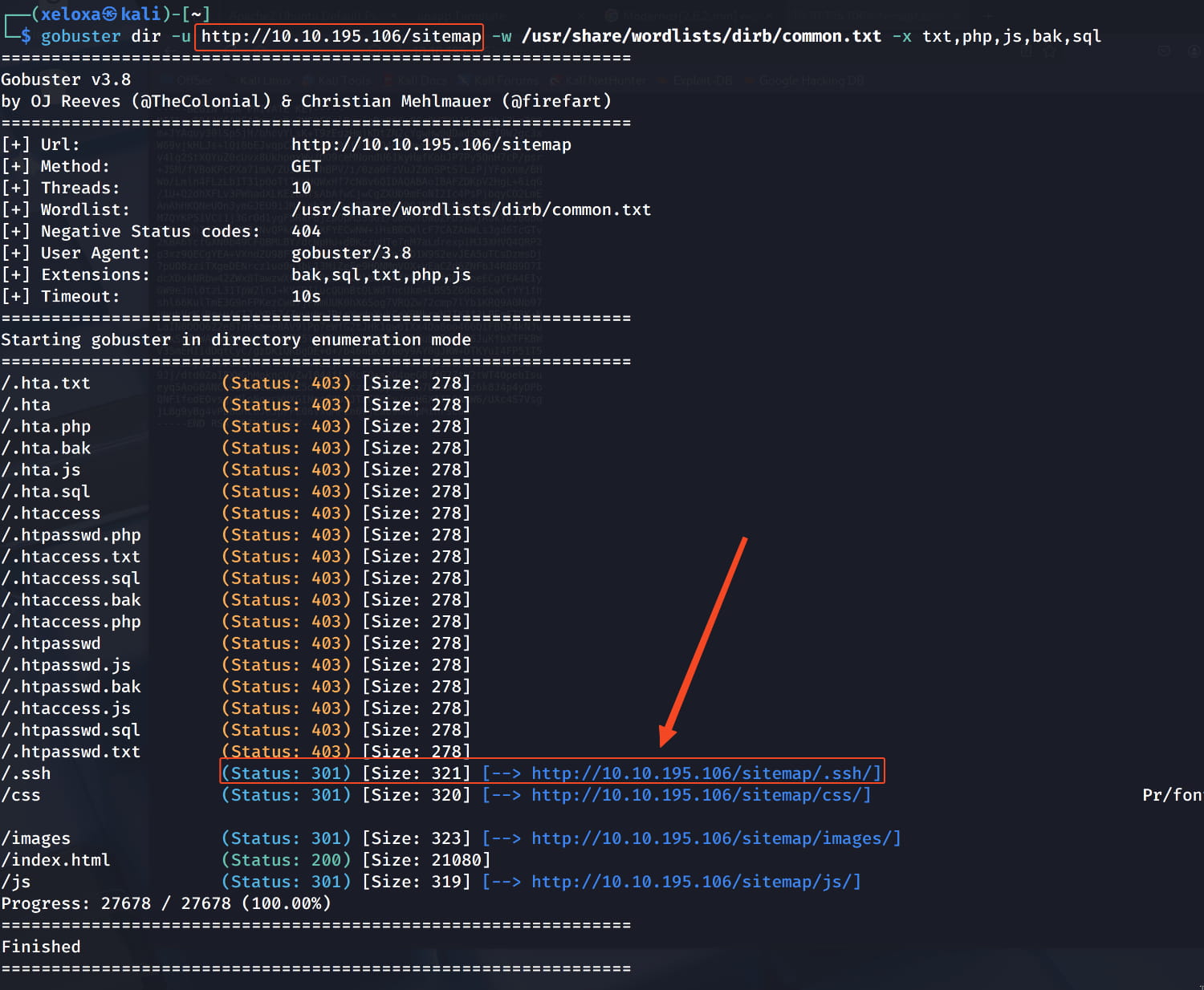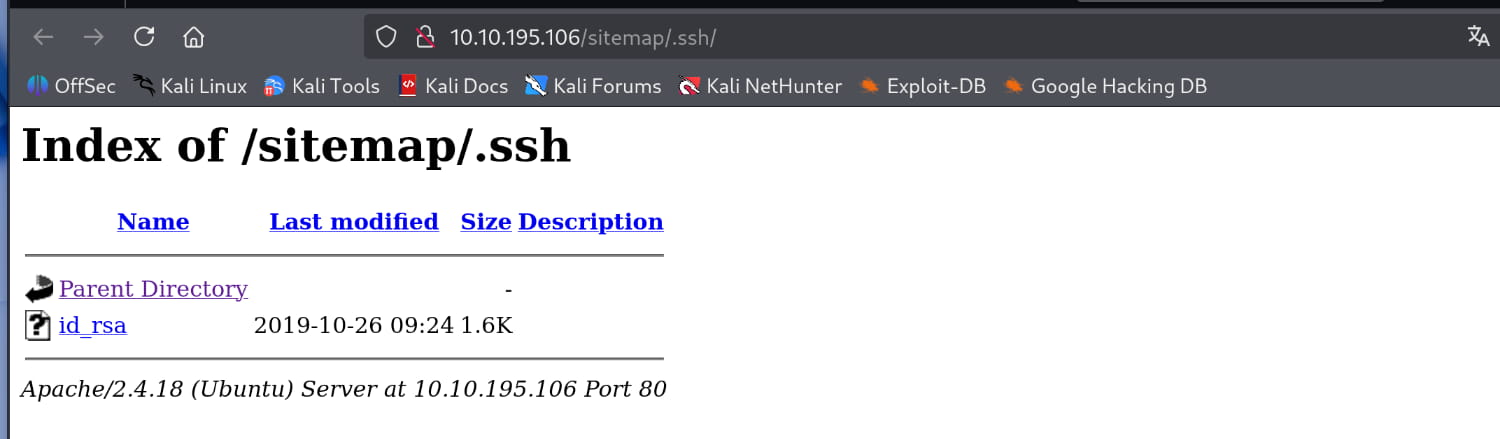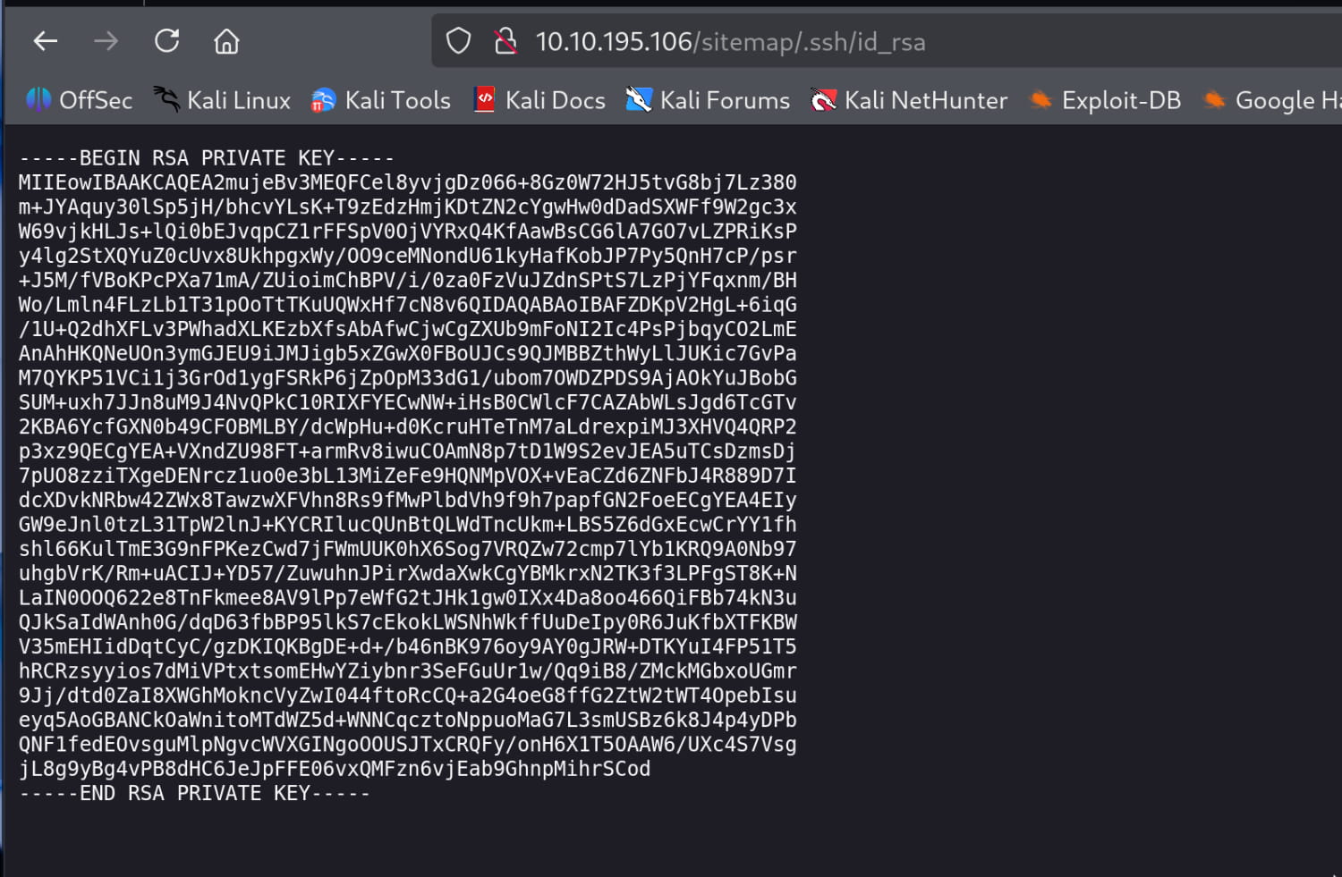 Here, the /sitemap/.ssh/ directory catches our attention.