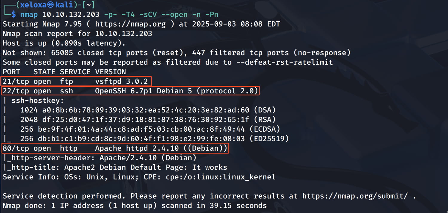 As you can see, our ssh, ftp and http services are active. Now, let's check our web server.