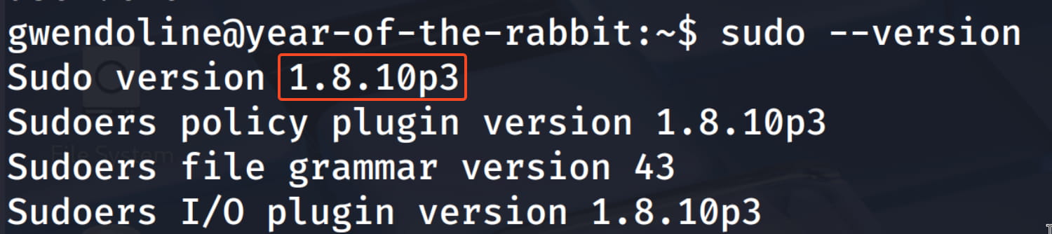 With sudo -l, we saw which commands we can run with sudo. The (ALL, !root) part catches our attention. We know that if such a situation exists—that is, if the rule is set for everyone except root—there might be a vulnerability in sudo. Now, let's check the sudo version.